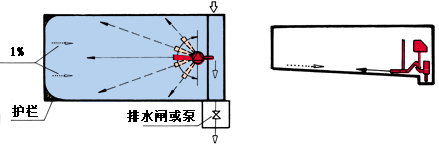因此為了保護管道的運行,延長管道的使用,減少管道系統的水力負荷,普遍的一種方法是增加雨水調蓄池。降雨初期階段,由于初期雨水攜帶了地面與管道沉積的污物雜質,這些污物雜質會沉積下來,導致調蓄池底部會滯留一些沉積污物雜質。如果不及時清理會造成污染物變質,致使產生異味,而且污物雜質沉積過多會影響調蓄池的功能。因此在降雨初期,需考對調蓄池底部的沉積物進行有效的沖洗。